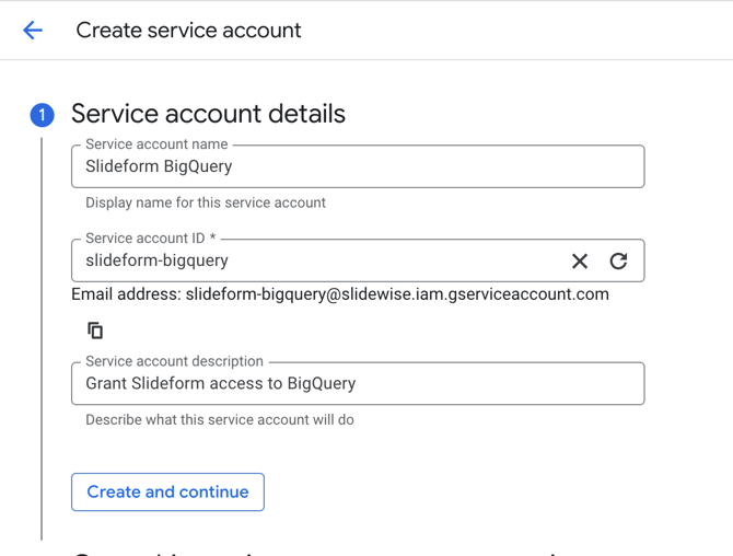 7. In Slideform, enter a name for the BigQuery data source, and enter the project ID.