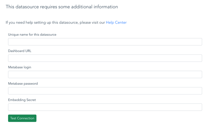 - In Slideform, go to Data Sources and click Add Data Source. Click Add Integration under Metabase.
