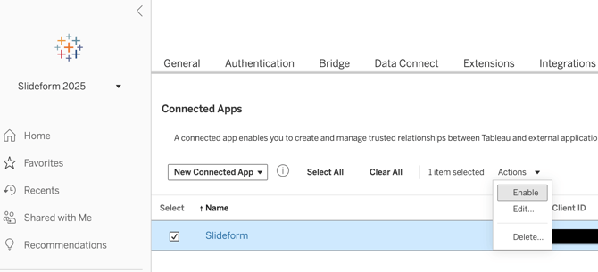 - Enter your API credentials (Client ID and Secret) from Sigma into Slideform.